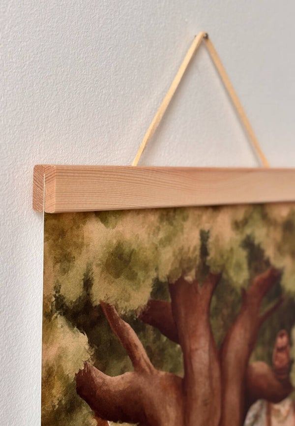 Deze posterhanger is mooi voor aan de muur en handig in gebruik door de magneetjes aan de binnenkant. Je klikt je poster gemakkelijk tussen de houten latjes tegen elkaar aan en hangt de 'm op aan het koord.