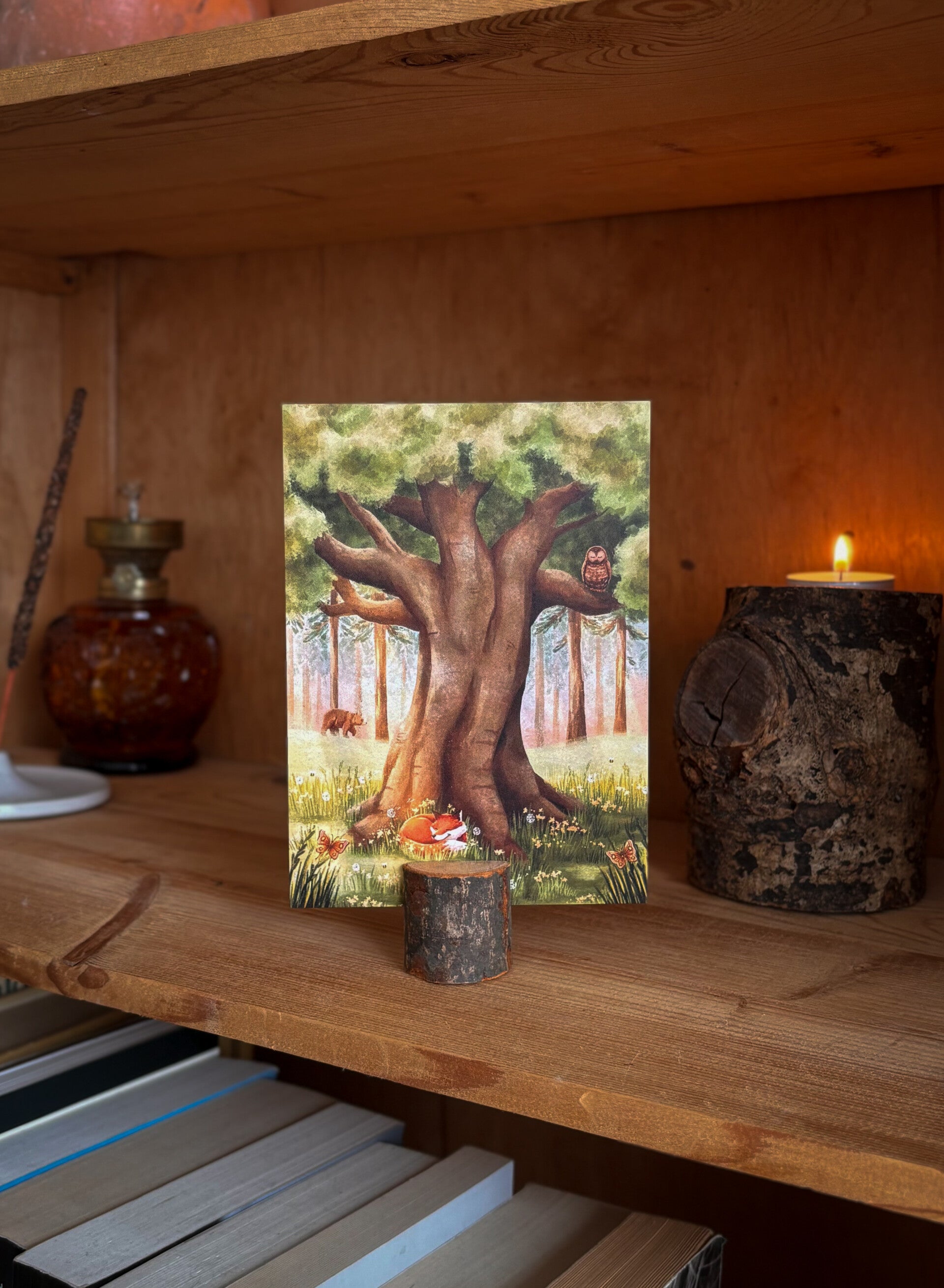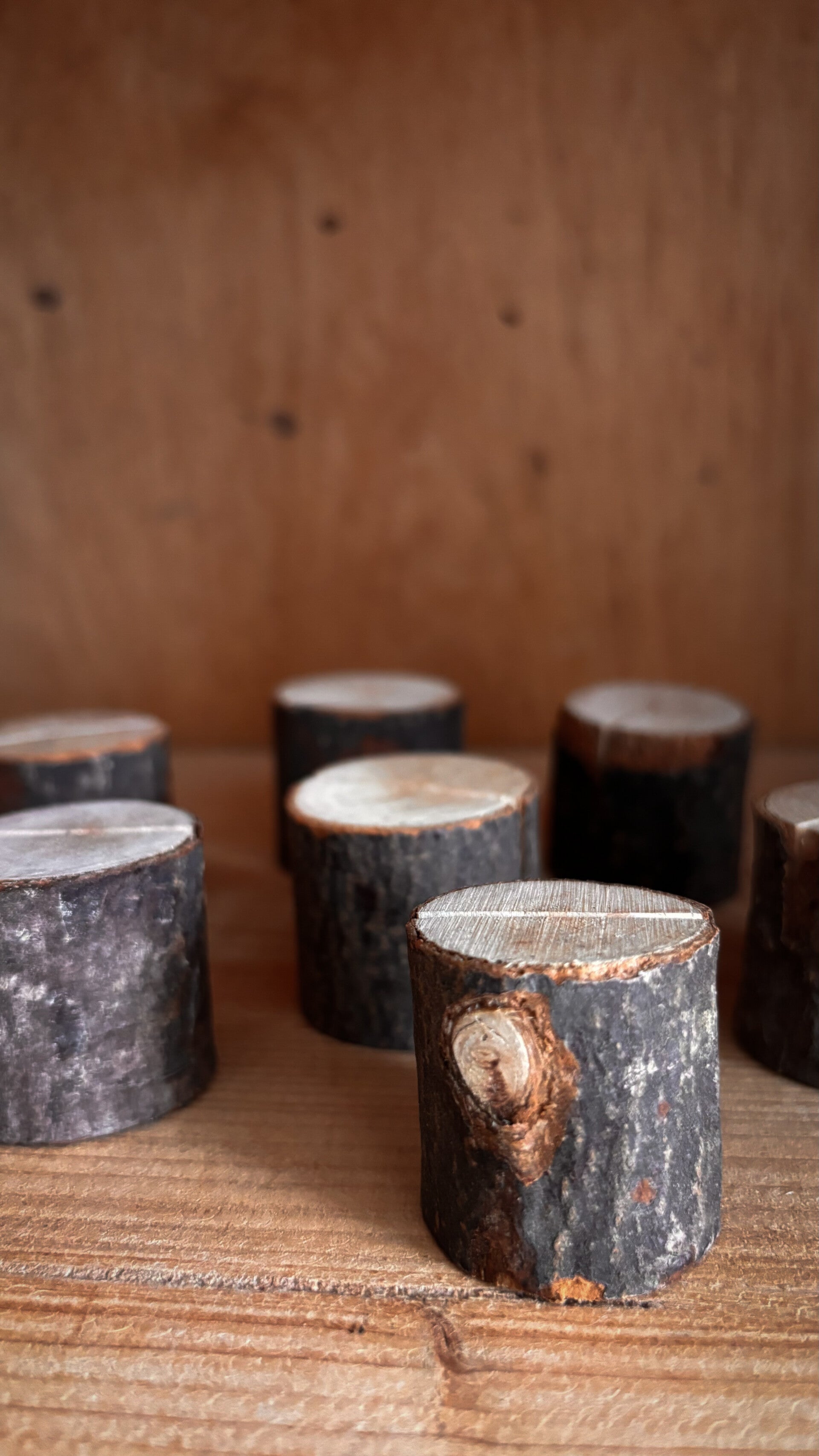 De boomstronkjes hebben een inkeping voor kaarten van A6 formaat.