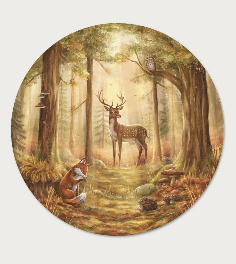 Deze muursticker neemt je mee naar een magische plek in het bos vol met vriendelijke bosdieren zoals de vos, de egel en het hert. Perfect voor in de kinderkamer van elke kleine dromer die gek is op het bos en de dieren!
